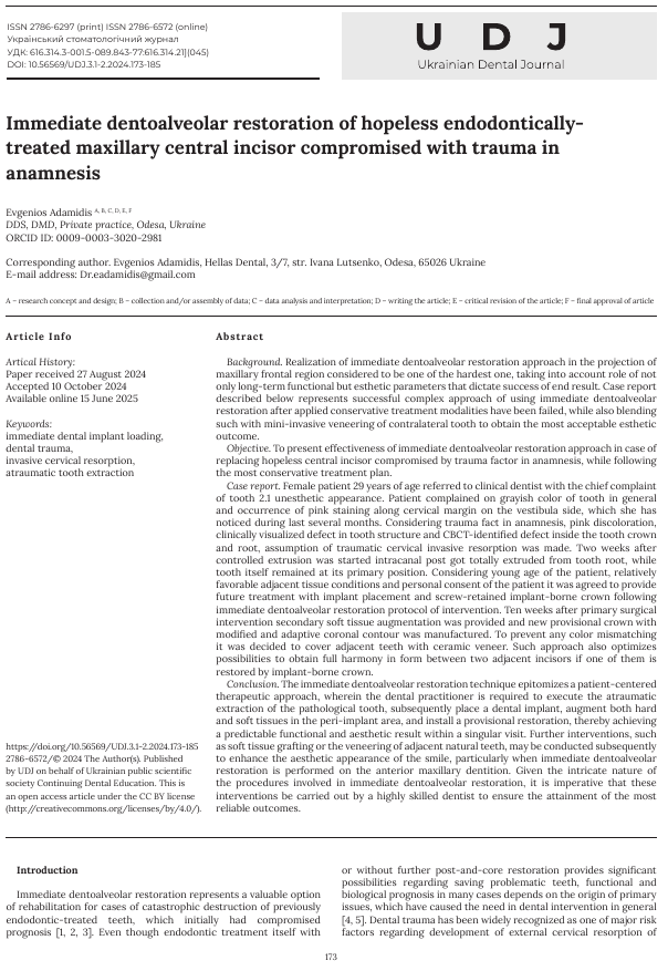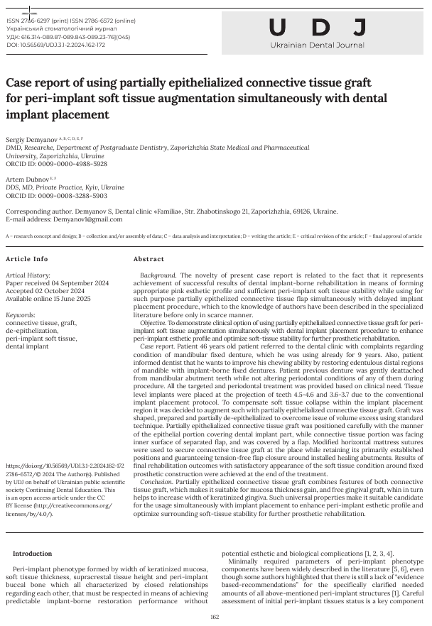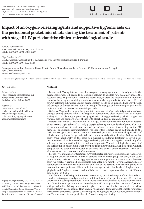 Vol. 3 No. 1-2 (2024): Ukrainian Dental Journal